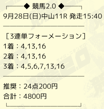 実際に公開された買い目はこちら。