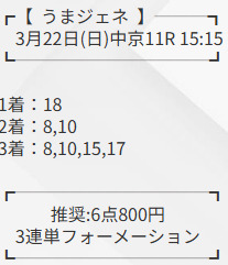 3着に⑧⑩⑮⑰まで広げたフォーメーション。