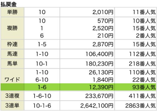 1番人気の⑥サウスバンクも押さえていたことで高配当に直結。