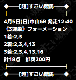 公開された買い目はこちら。